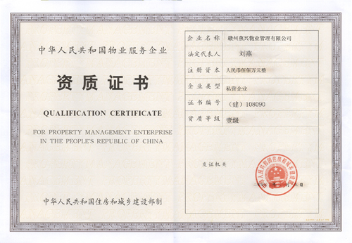 中華人民共和國物業(yè)服務(wù)企業(yè)資質(zhì)證書