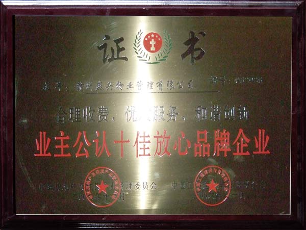 業(yè)主公認十佳放心品牌企業(yè)