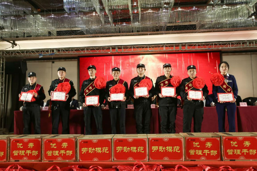 集團副總經(jīng)理徐桂香宣讀《關(guān)于表彰2019年度先進個人、先進集體的決定》:南昌分公司、永修分公司等16個分公司評為“優(yōu)秀分公司”;贛州商會大廈、贛州市稅務局等10個項目評為“優(yōu)秀示范項目”;鐘德全、鄧小紅、郭小蘭3人評為“勞動模范”;舒星、徐理文等10人評為“優(yōu)秀管理干部”;徐振民、黎華等21人評為“保文創(chuàng)衛(wèi)標桿”;吳子青、梁傳華等58人評為“服務之星”;劉寧生、余樟春等33人評為“愛崗敬業(yè)之星”;邱桂華、陳世洪等10人評為“安全守護之星”;曹運莉、李冬梅等11人評為“優(yōu)秀志愿者”;盧建宏、肖忠良等13人評為“工會積極分子”。