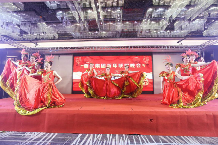 19時整,在燕興集團總部林明蘭、付雅琴等表演的歌伴舞“我們的中國夢”如詩如畫的節(jié)目中拉開了2019年迎新春聯(lián)歡晚會序幕。劉燕董事長發(fā)表了熱情洋溢的致酒辭,向各位領導、來賓,同事致以親切的問候和良好的祝愿,并攜公司高層領導向各位領導、來賓,同事敬酒。