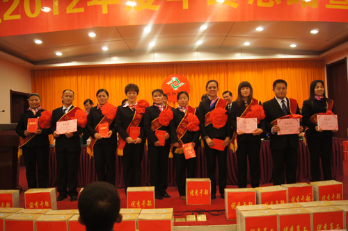 大會還宣布了榮獲2012年度先進集體和117名先進個人的名單,并在歡快的頒獎曲中為先進集體公務(wù)員小區(qū)、石城縣行政服務(wù)中心頒發(fā)了獎牌、獎金,為優(yōu)秀員工佩戴了綬帶、紅花,頒發(fā)了榮譽證書、獎品,公司領(lǐng)導(dǎo)與獲獎人員愉快地合影。其間,大會還安排了抽獎活動,共有13人中獎,領(lǐng)取了獎品。最后,在悅耳動聽的《燕興之歌》聲中園滿結(jié)束了大會議程。