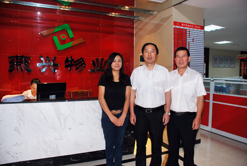 上圖:劉燕董事長(zhǎng)和劉南斗總經(jīng)理與劉金炎書記合影