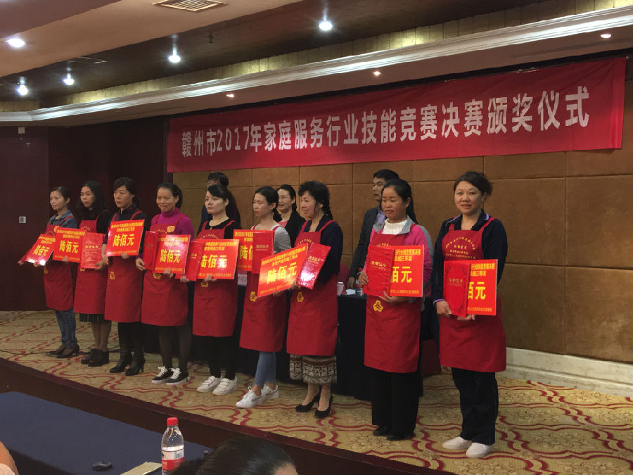2017年10月27日上午,贛州市2017年家庭服務(wù)行業(yè)技能競賽決賽頒獎儀式在香江灣國際酒店三樓紫荊廳隆重舉行,江西燕興物業(yè)管理有限公司員工曹運莉獲得“嬰兒護理組”第一名的表彰,舒靜和肖瓊玲分別獲得“家政服務(wù)員組”第一名和第三名的表彰,燕興物業(yè)公司還榮獲“團體優(yōu)勝獎”,展示了燕興人具有的“匠人精神”和專業(yè)能力。