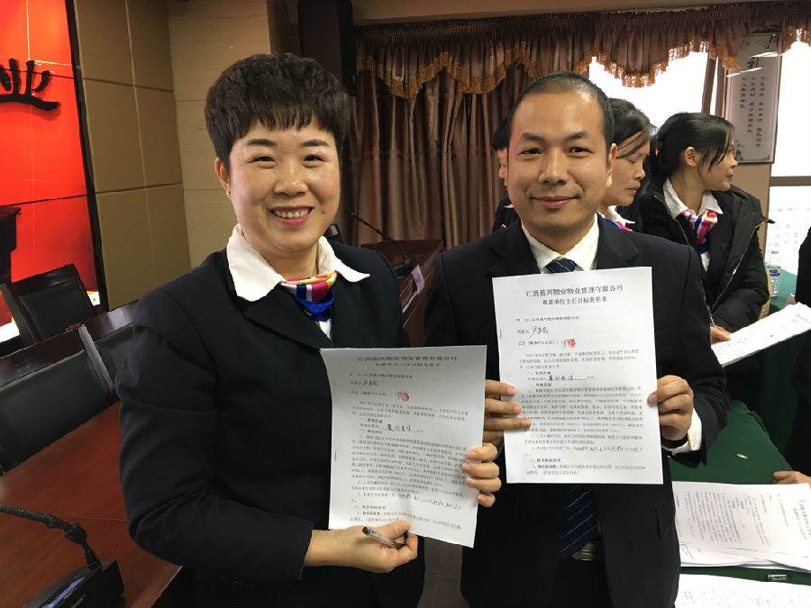 隨后,公司各運(yùn)營(yíng)經(jīng)理、各項(xiàng)目服務(wù)中心主任根據(jù)公司2018年經(jīng)營(yíng)管理目標(biāo),按照“以辦公樓住宅為兩翼,以學(xué)校醫(yī)院綜合體為重點(diǎn),以三高二新一現(xiàn)代為突破,全面實(shí)現(xiàn)智能信息化管理”的經(jīng)營(yíng)方針,分別向公司簽訂了《2018年目標(biāo)責(zé)任書(shū)》。