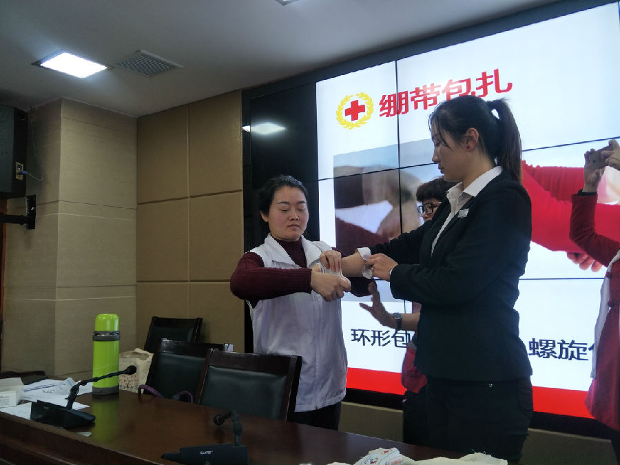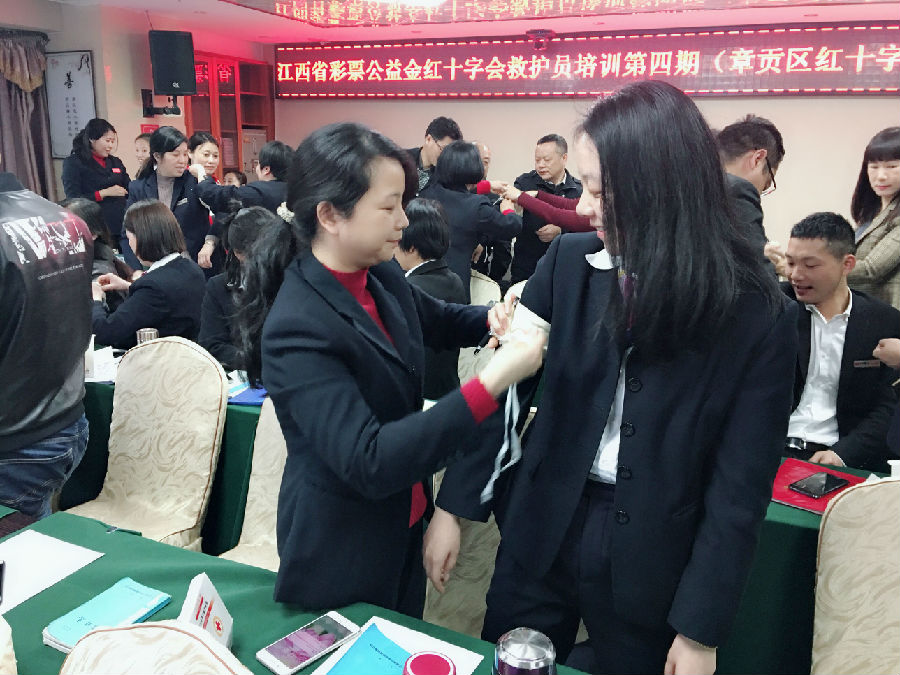 這次培訓(xùn)專門邀請了贛州市紅十字會專家廖老師前來授課。應(yīng)急救護培訓(xùn)分為理論學(xué)習(xí)和實踐操作兩個方面,主要以“理論學(xué)習(xí)+實踐操作+現(xiàn)場考試”的形式開展,以救護新概念、心肺復(fù)蘇術(shù)、氣道異物梗阻急救法、突發(fā)事件和意外傷害逃生避險技能、創(chuàng)傷救護理論、常見急癥現(xiàn)場救護原則為培訓(xùn)內(nèi)容。廖老師用通俗易懂的語言,詳細(xì)講解了心肺復(fù)蘇的原理、規(guī)范流程、操作技巧,創(chuàng)傷救護的止血、包扎、固定和搬運等應(yīng)急救護基礎(chǔ)知識,并利用模擬人道具和教具,現(xiàn)場指導(dǎo)參訓(xùn)員工一一進行規(guī)范操作,鞏固了學(xué)習(xí)內(nèi)容,提升了應(yīng)急救護實際操作能力。