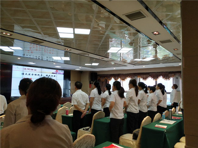 道德講堂按照“唱歌曲、學(xué)模范、誦經(jīng)典、談感悟、發(fā)善心、送吉祥”六個(gè)環(huán)節(jié)進(jìn)行。在一首慷慨激昂的《愛(ài)崗敬業(yè)歌》之后,最美教師張麗莉的先進(jìn)事跡,堪稱愛(ài)崗敬業(yè)的楷模,她的故事讓在場(chǎng)的所有人都感到感動(dòng)?!罢劯形颉杯h(huán)節(jié)中,來(lái)自贛州技師學(xué)校物業(yè)服務(wù)中心的鮑先琳主任談到,只有愛(ài)崗敬業(yè),好好工作,才能給自己帶來(lái)充實(shí)、快樂(lè)的生活,為社會(huì)作出更大的貢獻(xiàn),創(chuàng)造更大的價(jià)值。在“發(fā)善心”環(huán)節(jié)中,每位在場(chǎng)的員工做出了一份道德承諾,承諾在以后的工作中“遵紀(jì)守法、廉潔自律,愛(ài)崗敬業(yè)、務(wù)實(shí)奉獻(xiàn)”。