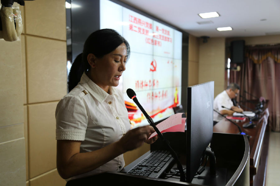 第二黨支部黨員蔡華英朗讀了王孝錫寫(xiě)給父母的訣別信