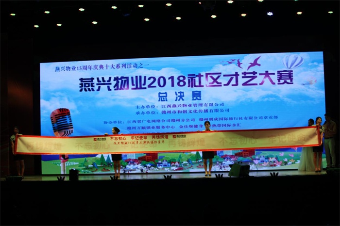 2018年9月2日晚上,江西燕興物業(yè)管理有限公司第五屆社區(qū)才藝大賽總決賽,在贛州市章貢區(qū)奧林匹克廣場(chǎng)虔州大舞臺(tái)隆重舉行。贛州市中小企業(yè)管理局副局長(zhǎng)卓秋生,贛州市章貢區(qū)民營(yíng)企業(yè)管理局局長(zhǎng)鐘群,贛州市中小企業(yè)協(xié)會(huì)、章貢區(qū)民營(yíng)企業(yè)聯(lián)合會(huì)會(huì)長(zhǎng)歐陽(yáng)宇俊等領(lǐng)導(dǎo)嘉賓蒞臨指導(dǎo),燕興物業(yè)董事長(zhǎng)劉燕,總經(jīng)理劉南斗,副董事長(zhǎng)陽(yáng)敏,副總經(jīng)理徐桂香、張衛(wèi)東等公司領(lǐng)導(dǎo),以及公司員工、小區(qū)業(yè)主、市民等近千人在場(chǎng)觀看。