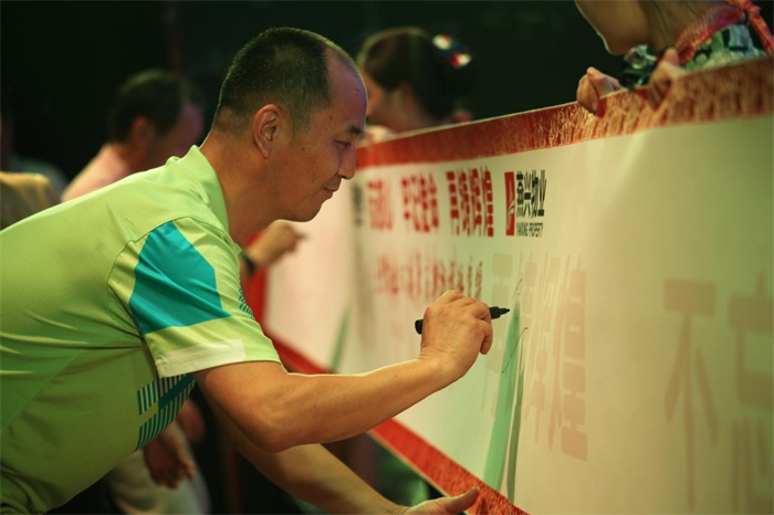 現(xiàn)場(chǎng)來(lái)賓在“祝福長(zhǎng)卷”上題寫祝福語(yǔ)