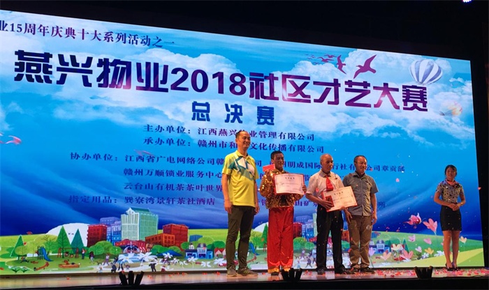 本屆社區(qū)才藝大賽是燕興物業(yè)成立十五周年系列慶典活動(dòng)之一,于今年7月1日在章貢區(qū)江濱御景小區(qū)舉辦第一場(chǎng)比賽,并先后在南昌、吉安、上猶、贛縣、章貢區(qū)等項(xiàng)目小區(qū)舉辦了14場(chǎng)初賽,一共吸引了1500多名小區(qū)業(yè)主熱情參與,參賽選手既有67歲的阿姨,也有6歲的小朋友。通過(guò)初賽優(yōu)選出30個(gè)節(jié)目參加復(fù)賽,最終有12個(gè)節(jié)目成功晉級(jí),參加今晚的決賽。參賽選手們以飽滿的熱情,生動(dòng)的語(yǔ)言,夸張的肌體,抒發(fā)對(duì)生活的熱愛,分享對(duì)藝術(shù)的感受。