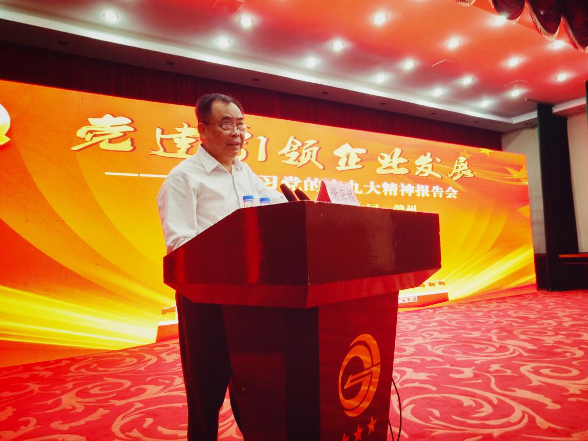 10月26日上午,由贛州市非公經(jīng)濟(jì)組織黨委、江西燕興物業(yè)黨委主辦的《黨建引領(lǐng)新發(fā)展——宣講黨的十九大精神報(bào)告會(huì)》在贛南賓館舉辦,黨的十九大代表、河南圓方集團(tuán)黨委書記、總裁、非公企業(yè)黨建學(xué)院院長(zhǎng)薛榮主講。全市各領(lǐng)域基層黨員干部共計(jì)500余人聆聽報(bào)告。會(huì)議由贛州市委統(tǒng)戰(zhàn)部副部長(zhǎng)、贛州市工商聯(lián)黨組書記謝來福主持;江西燕興物業(yè)黨委書記、董事長(zhǎng)劉燕致辭。