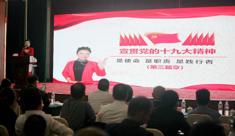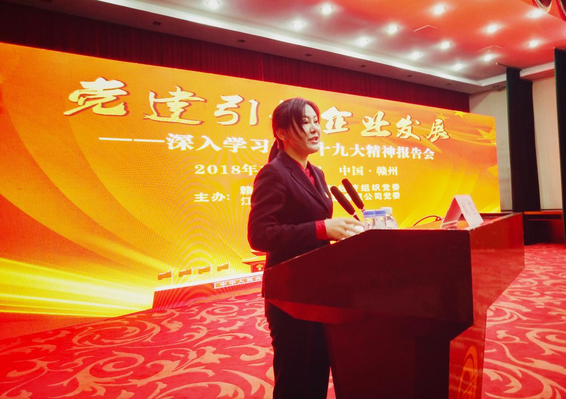 報(bào)告會(huì)上,薛榮生動(dòng)地講述了自己創(chuàng)業(yè)的過程及黨建引領(lǐng)企業(yè)發(fā)展的過程;講述了如何從下崗職工成長(zhǎng)為擁有近5萬(wàn)名員工的老板;講述著她赴北京參加19大的所見所聞所歷;講述了黨的歷次代表大會(huì)鮮為人知的經(jīng)歷;講述了她四次被習(xí)總書記接見的感動(dòng);最后以深情的詩(shī)朗誦《我是黨的女兒》,表達(dá)著對(duì)黨的熱愛之情,結(jié)束了此次精彩的宣講十九大演講。