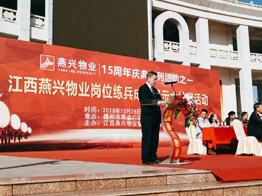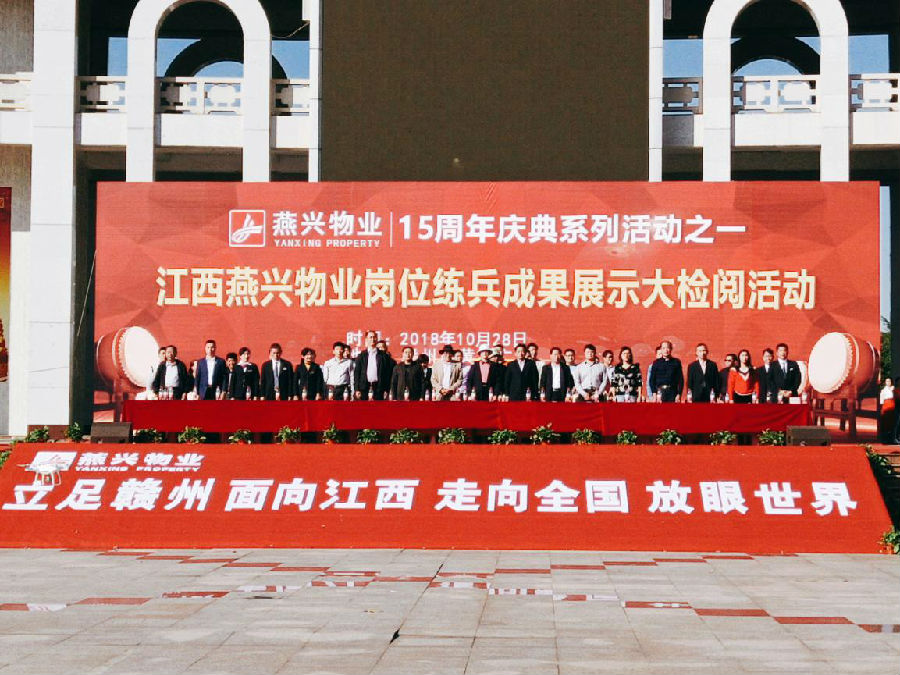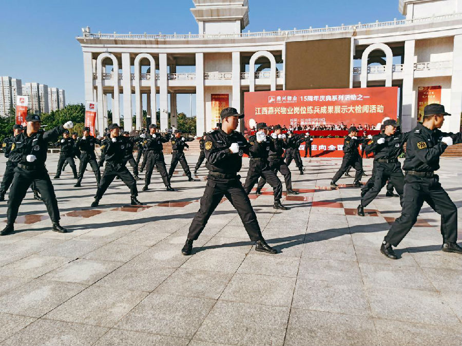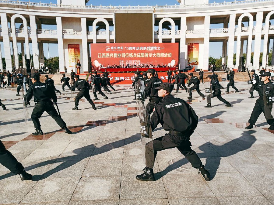 2018年10月28日,江西燕興物業(yè)管理有限公司在贛州市黃金廣場隆重舉行崗位練兵成果展示大演練活動。參檢員工以嚴(yán)整的隊(duì)姿和精湛的技能展示,匯報(bào)了崗位練兵的成果,展示了強(qiáng)大的綜合素質(zhì)和良好的精神風(fēng)貌。相關(guān)主管部門、行業(yè)協(xié)會和兄弟公司領(lǐng)導(dǎo)、業(yè)主代表等應(yīng)邀參加活動。