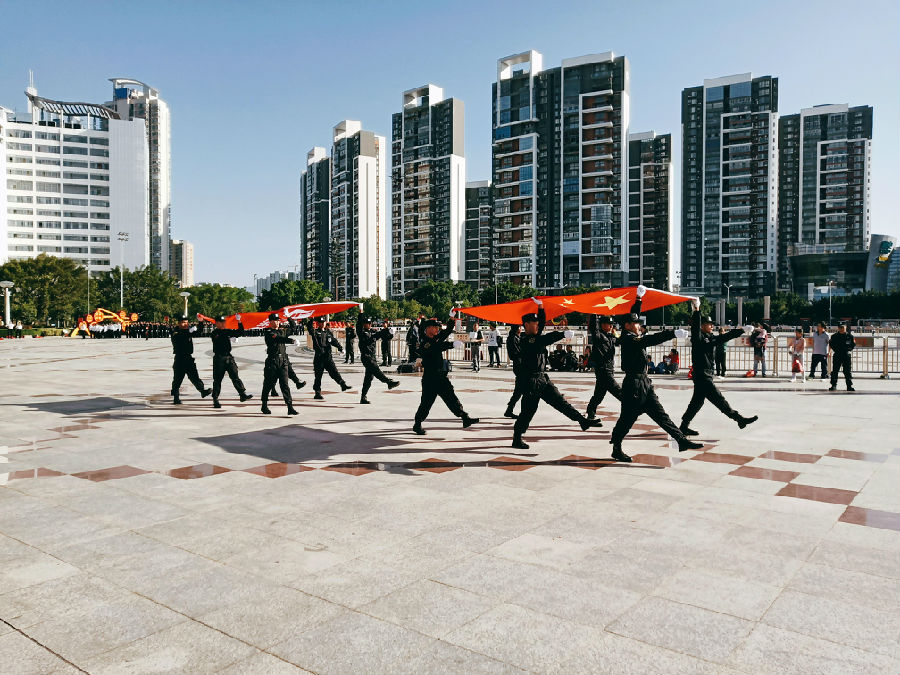 15時(shí)20分,黃金廣場艷陽高照,人聲鼎沸,大檢閱活動在莊嚴(yán)的《中華人民共和國國歌》聲中拉開帷幕。公司黨委副書記、總經(jīng)理劉南斗首先發(fā)表熱情洋溢致辭。劉總指出:開展崗位練兵成果展示,是我們深入貫徹黨的十九大精神,落實(shí)“質(zhì)量強(qiáng)國”發(fā)展戰(zhàn)略,堅(jiān)持“質(zhì)量第一”價(jià)值導(dǎo)向的重要行動,也是展現(xiàn)物業(yè)管理從業(yè)人員專業(yè)形象和精神風(fēng)貌,踐行2018年物業(yè)管理行業(yè)服務(wù)質(zhì)量提升年工作主題,更是增強(qiáng)優(yōu)質(zhì)物業(yè)服務(wù)供給能力、更好地滿足廣大業(yè)主對優(yōu)質(zhì)物業(yè)服務(wù)的需求,讓更多的人知道物業(yè),讓更多人了解物業(yè),讓更多的人支持物業(yè)的具體舉措。劉總表示,通過這次崗位練兵技能展示,我們要以練兵促提升,以展示促發(fā)展,創(chuàng)新行業(yè)人才培養(yǎng)、選拔、激勵機(jī)制,提高行業(yè)從業(yè)人員的專業(yè)能力和綜合素質(zhì),為物業(yè)行業(yè)轉(zhuǎn)型升級和高質(zhì)量發(fā)展提供技術(shù)支撐和人才保障,讓物業(yè)成為有奔頭的產(chǎn)業(yè),讓物業(yè)成為有吸引力的職業(yè),讓物業(yè)成為讓人尊重的行業(yè)。