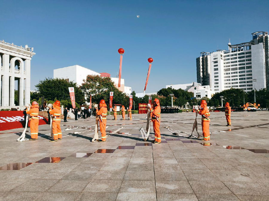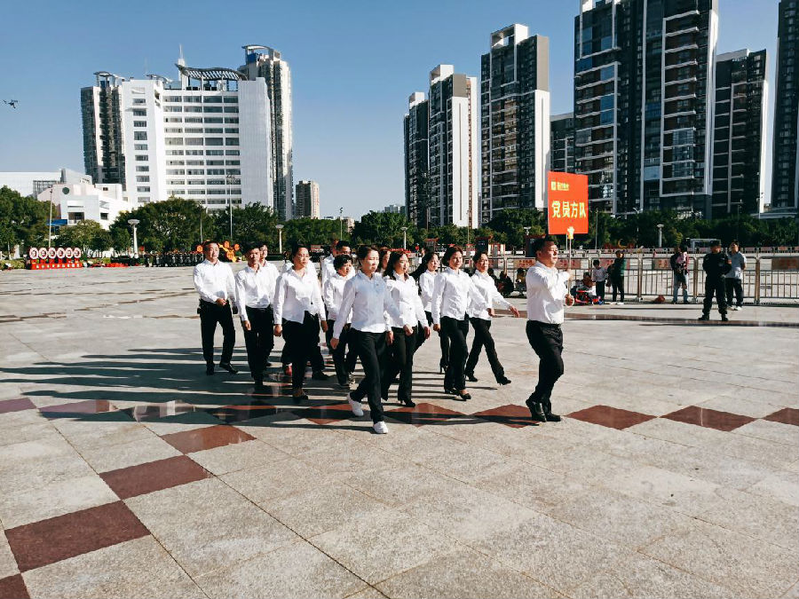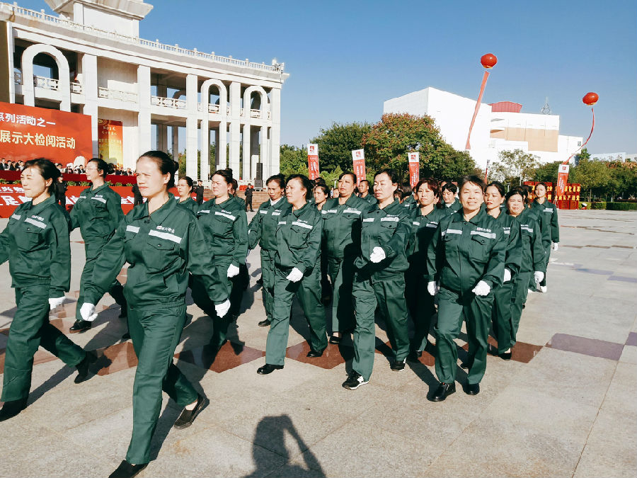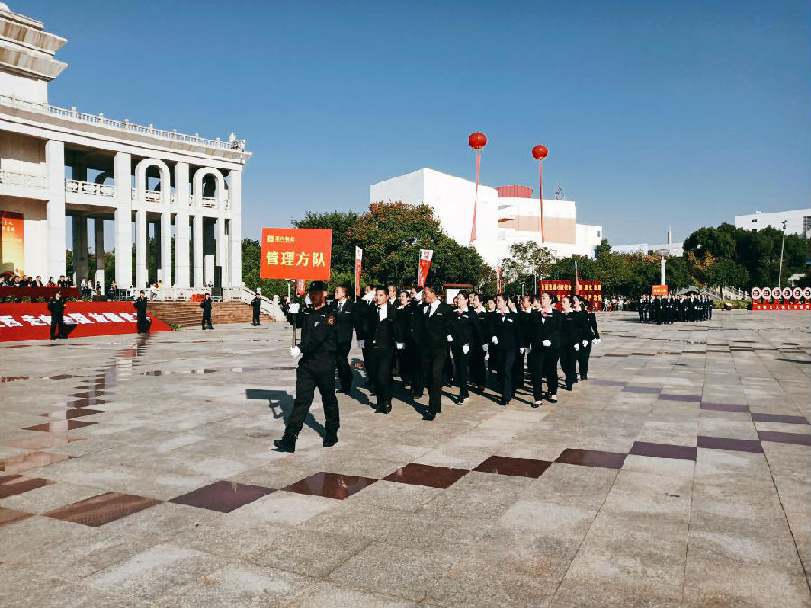 接著,在公司黨委書記、董事長劉燕的一聲令下,分列式演練展示和著《運(yùn)動員進(jìn)行曲》正式舉行。旗手陣隊(duì)、引路陣隊(duì)和黨員方隊(duì)、特勤方隊(duì)、應(yīng)急方隊(duì)、管理方隊(duì)、管家方隊(duì)、義務(wù)消防方隊(duì)、保障方隊(duì)、環(huán)境管理方隊(duì)的隊(duì)員們,邁著矯健的步伐,精神抖擻地一一走過檢閱臺。他們步伐整齊劃一,氣勢威武雄壯,口號嘹亮,充分展現(xiàn)了燕興人蓬勃向上的精神面貌和昂揚(yáng)奮發(fā)的工作斗志。