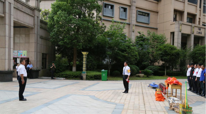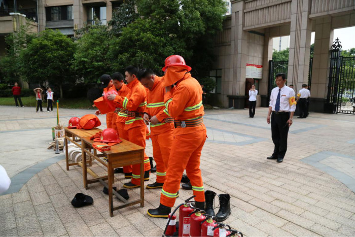 活動(dòng)演習(xí)前,進(jìn)行了消防通訊報(bào)警、警戒疏散、行動(dòng)滅火、傷員救護(hù)、電梯困人救援基本技能培訓(xùn),傳授了常用消防器材(滅火器、水帶連接)操作使用方法,并展示了“一警六員”服裝規(guī)范穿戴和滅火器滅火、水帶連接演練。