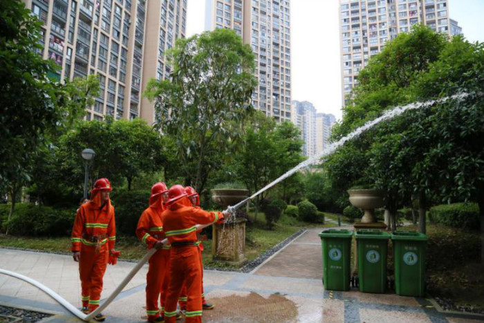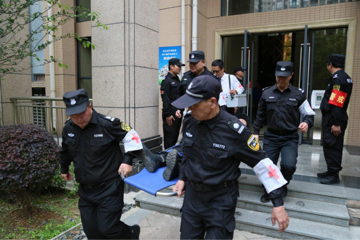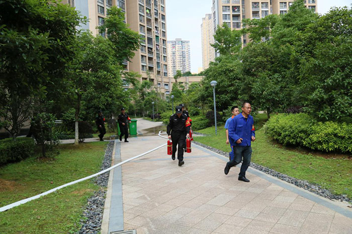 一是救火實(shí)戰(zhàn)演練:小區(qū)一棟二單元不慎起火,火勢(shì)不斷蔓延擴(kuò)大,巡邏安保發(fā)現(xiàn)情況,確認(rèn)火警,撥打“119”電話報(bào)警,隨后立即啟動(dòng)消防設(shè)施和滅火應(yīng)急疏散預(yù)案,展開自救。起火部位附近物業(yè)安保員工迅速向火點(diǎn)集結(jié),在1分鐘內(nèi)形成第一滅火力量,及時(shí)疏散現(xiàn)場(chǎng)人群,救護(hù)傷員。通過(guò)現(xiàn)場(chǎng)演練,最終完成整個(gè)滅火過(guò)程;