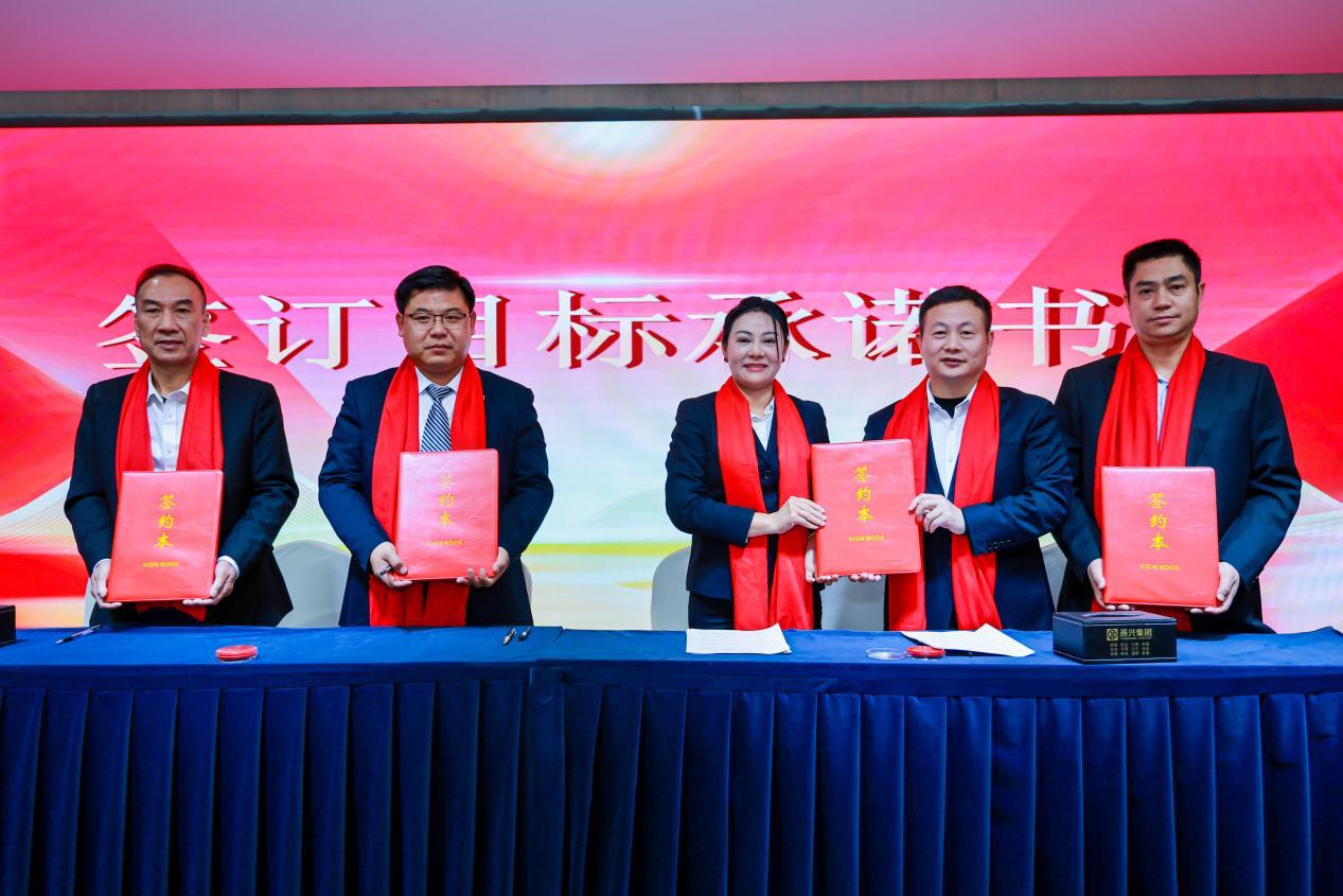 會(huì)上,集團(tuán)董事長劉燕與集團(tuán)市場拓展部、各子公司、分公司簽訂2025年經(jīng)營目標(biāo)承諾書。承諾書的簽訂,既是完成各項(xiàng)經(jīng)營目標(biāo)的軍令狀,也是自我加壓、攀登超越的奮進(jìn)宣言,詮釋著一份責(zé)任、一種擔(dān)當(dāng)。集團(tuán)各部門、子公司、分公司將聚焦經(jīng)營,將考核目標(biāo)轉(zhuǎn)化為行動(dòng)計(jì)劃,逐級(jí)分解,有力有序、保質(zhì)保量完成全年各項(xiàng)工作任務(wù)。