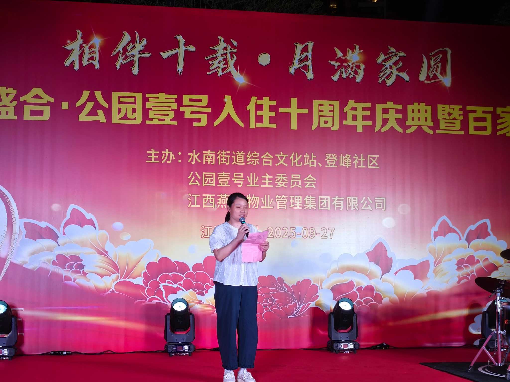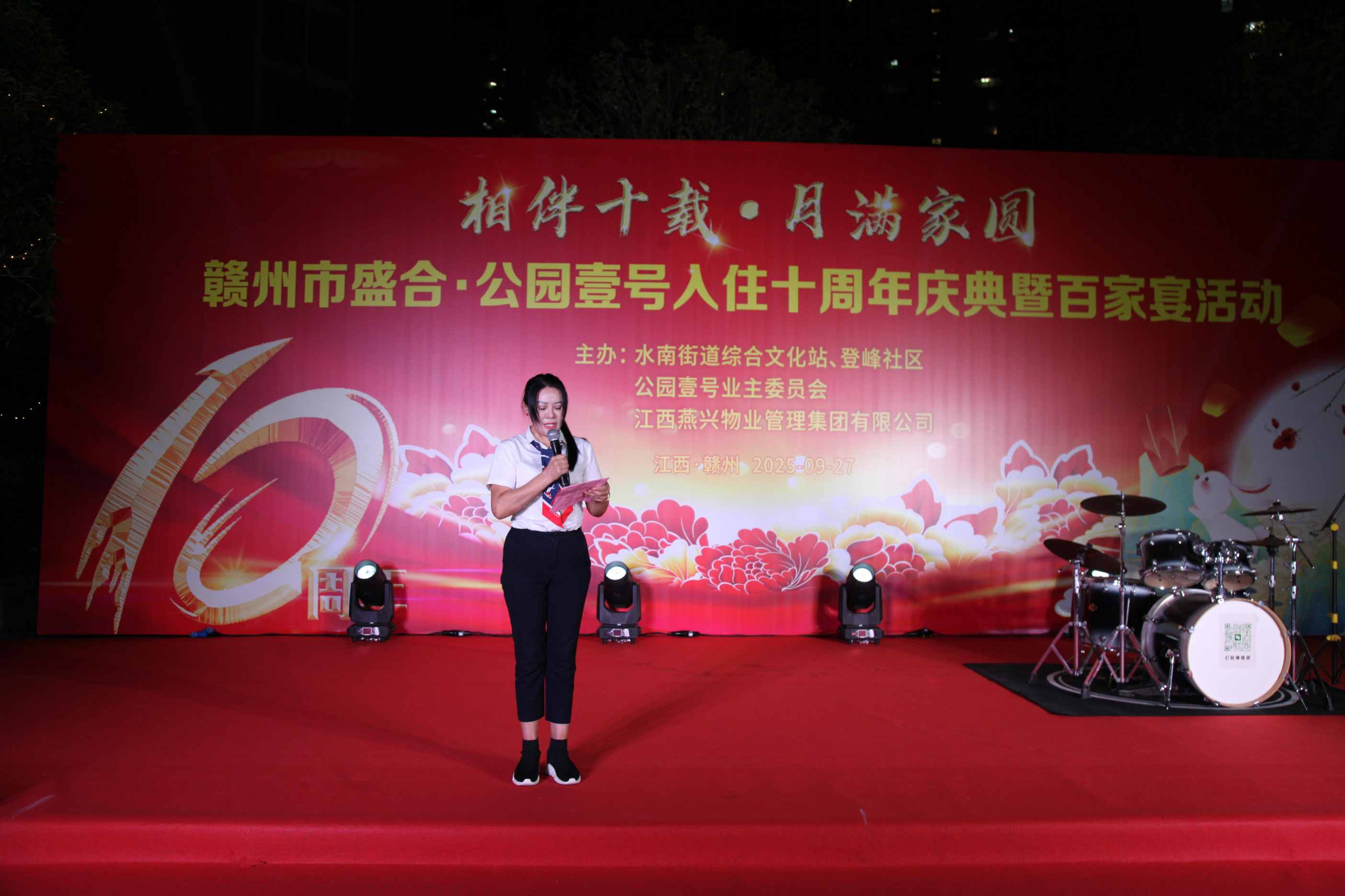 金秋送爽,丹桂飄香。9月27日晚,章貢區(qū)水南街道登峰社區(qū)盛合·公園壹號小區(qū)張燈結(jié)彩、歡聲笑語,一場以“相伴十載·月滿家圓”為主題的業(yè)主入住十周年慶典暨百家宴活動溫馨上演,燕興物業(yè)集團代表和數(shù)百名業(yè)主代表歡聚一堂,共敘十年鄰里深情。