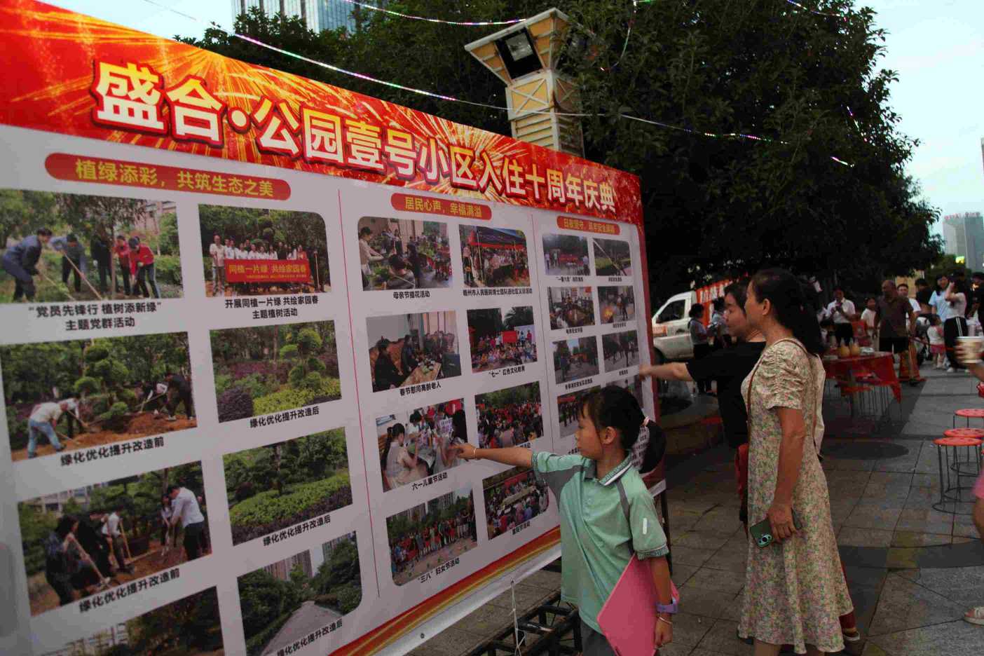 活動前,小區(qū)居民觀看小區(qū)十周年發(fā)展蝶變。