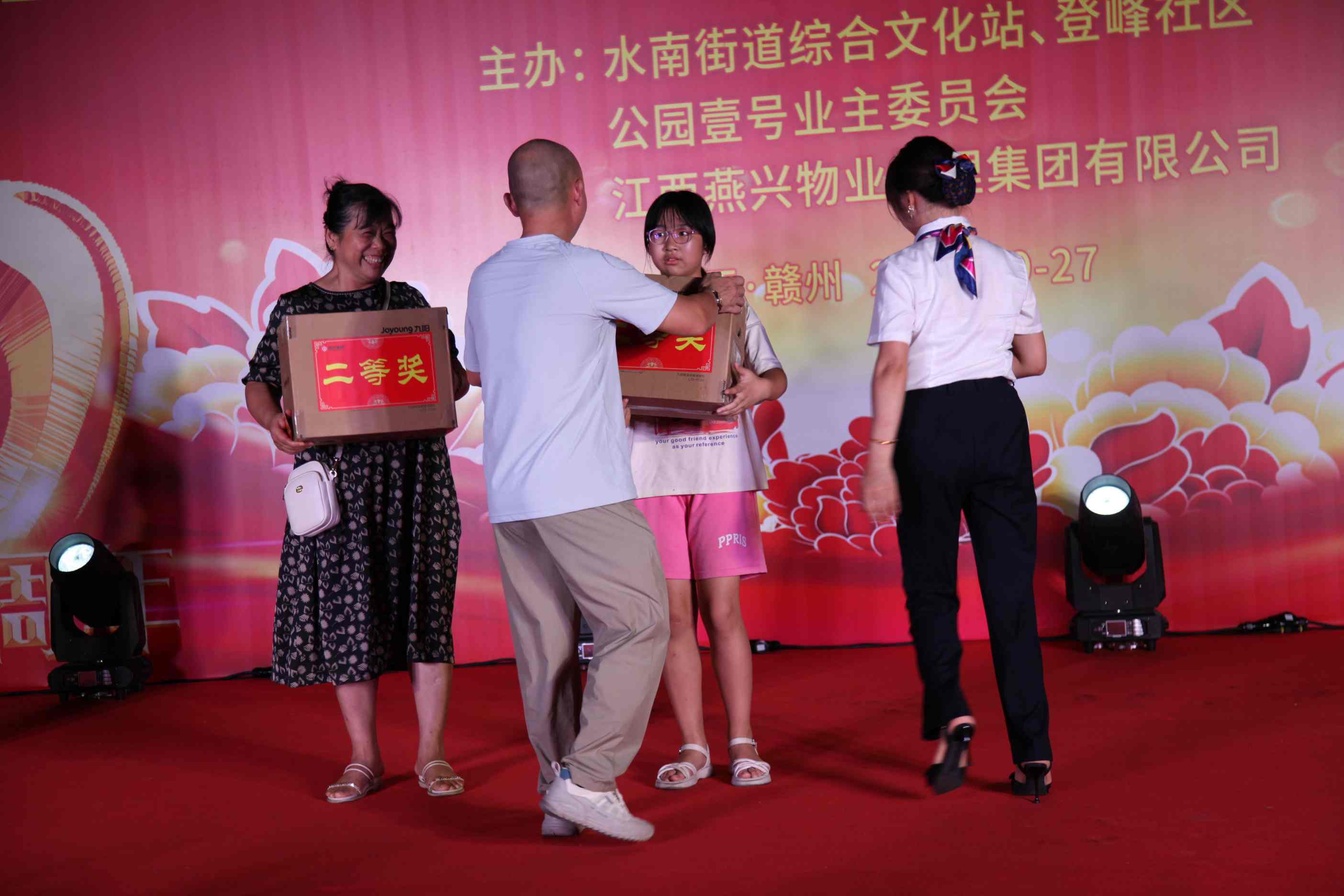 接著由小區(qū)舞蹈隊、社區(qū)藝術(shù)團體、燕興物業(yè)保安等共同帶來的架子鼓、舞蹈、詩歌朗誦等12個精彩節(jié)目輪番上演,充分展現(xiàn)社區(qū)濃厚的文化氛圍與蓬勃活力?;顒又校^(qū)婦委會聯(lián)合小區(qū)業(yè)委會對小區(qū)涌現(xiàn)的孝老愛親、睦鄰友好等“模范家庭”進行表彰,樹立鄰里和諧的榜樣。隨后的多輪互動抽獎環(huán)節(jié),歌曲歌唱祖國把現(xiàn)場氣氛推向高潮。