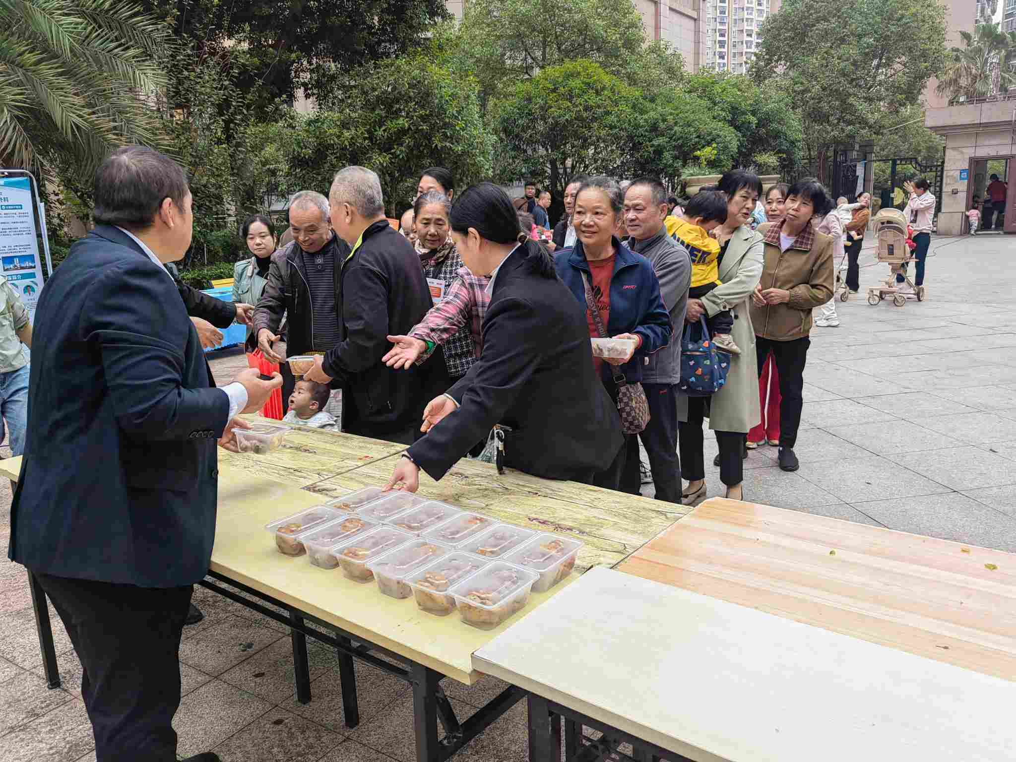 公務(wù)員小區(qū)開(kāi)展美食品嘗和洗地毯、中醫(yī)義診等便民服務(wù)活動(dòng)