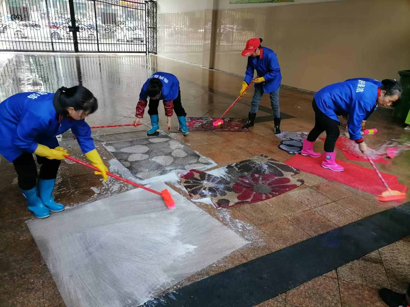 清洗地毯現(xiàn)場同樣忙碌。物業(yè)工作人員耐心地處理著每一塊地毯,不放過任何一個(gè)角落。經(jīng)過清洗后的地毯煥然一新,去除了污垢和異味,為居民營造了更加清潔、舒適的居住環(huán)境,居民們對工作人員的辛勤付出表示衷心感謝。